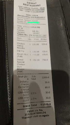 Ā Ā Ā Read moreThe best resturant in town. Very soothing and hygienic place. The staff is very polite and the taste is great. You get a large variety of veg and non veg dishes to choose from. Its a delight being here. Be sure to visit at least once. The best thing is the specials menu. The dawat special biryani is just tpo good and a great value for money. Do visit it. The place is great and it is also air conditioned. I would recommend it to everyone in akola. Service 10/10 Taste 10/10 Hygiene...