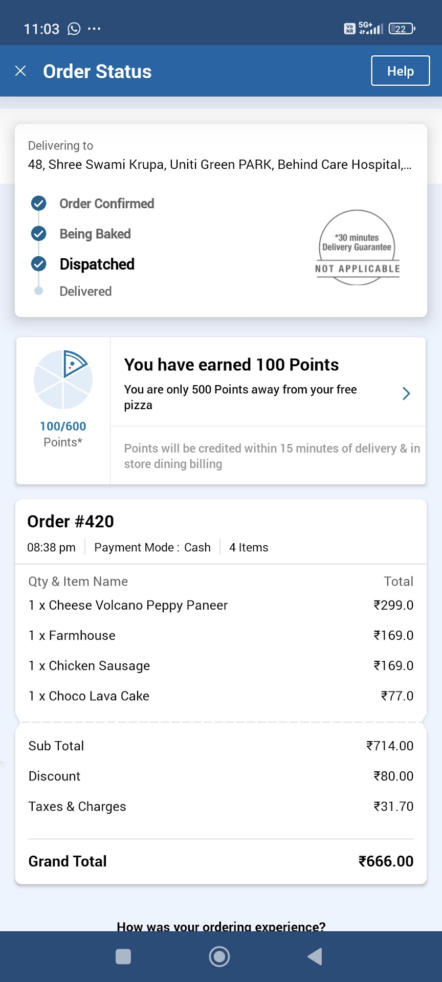Read moreThe service is extremely poor. In the past, Domino's didn't offer service in my area, but they recently started. So, I placed an order, and it was delivered to my doorstep. However, when I ordered from the same location today, I received a call from the staff informing me that they couldn't deliver to my address and that I needed to go to another location. If you can't deliver to my current location, why accept the order in the first place? Moreover, the staff's attitude was very impolite when he asked me, "Do you want me to deliver or not?" Is this the level of service you provide? Additionally, I was continuously tracking the order, and it arrived 10 minutes later...