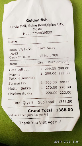 Read moreGolden Fish is a quaint restaurant located in the bylanes of Pimpri Chinchwad serving fresh and delicious food.