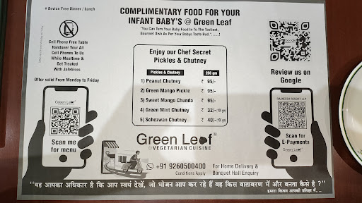 I have visited them twice during last 3 days. Once for lunch and 2nd time for dinner, based upon my experience 2 years ago. I was astonished to experience that, they have not only sustained the Quality of food but now elevated the customer oriented approach. Right from staff to owner, everyone resonate a superb customer focused approach. They believe upon transparency to a level that, they invite their customers to visit their kitchen, which is fully visible from sit-out zones. This team is committed for building an experience around treating food and customer to a next level. It's reflected in their offer, where you can get their piping hot and crispy jalebi free, if you keep your phone away and have undistracted experience to eat with your loved ones. Same is also reflected into their offer for free and quality food to the infants with customers. Thanks to Mr Joshi to build this supreme customer centric approach and encourage their staff to own it from heart. Its reflected in my interaction with Amit and Vishal. I am putting a snapshot of table mat, which also depicts this customer oriented approach. Keep up the great stuff, Grean Leaf team. Now about food: Have tried multiple dishes, but loved the Basil Paneer, Mushroom 65, Lacchha paratha, Special Fried Rice and Rabdi Jeelebi among all. All were distinct and flavorful with large quantities. 2022 review:Had ordered Spinach Soup and Paneer Chilli. It was good. Spinach soup was flavourful with fried garlic. The Italian Sizzler was also good. Loved the service of staff...