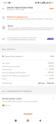 Read moreThe worst place to order, my order amount was 775.85. Chole Bhature (extra bhatura), moong dal halwa, Dahi wada, Paneer Butter Masala with 2 Garlic nàan and 1 extra Butter naan. I received 3 plain Naan instead of Garlic nàan and Butter Naan. I call up the outlet and more than 5 people spoke to me just asking my order number and my issue. Finally, 1 guy says that you get plain nàan with Paneer Butter masala combo.I told him that I made a choice of the Bread I wanted as there was an option to do so. I also asked him what about the extra Butter naan. They tried to convince me that what they sent was the order. I lost my cool, Then the manager comes on the call and says come here and do whatever you want..look at the guts...I told him that non of the guys were listening, can you please look at my order..he figured they were wrong and tells me it will take 20mins to deliver the naans as per my order...20mins?..Please don't...