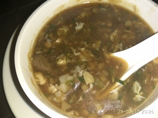 MIX SEA FOOD SOUP ( 3 /5 ) This soup is combination of Prawns, Chicken and Eggs. Cooked with herbs and inhouse chinese sauce. Mild Spicy but extremely tasty. would recommend over regular soup.