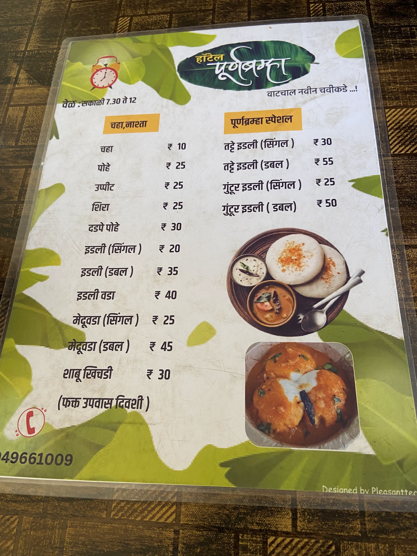 Hotel Purnbramhaa - Best Restaurant for Idali-medu wada and Tatte Idali