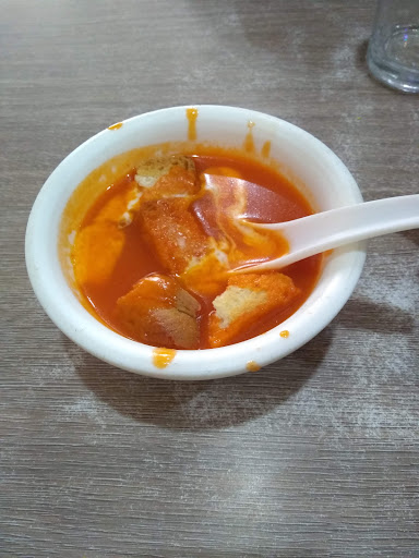 Next served tomato soup, which was good in taste, creamy, good in consistency, warm slight sweet with crunch toasty bread cubes but too much in small bowl of soup.