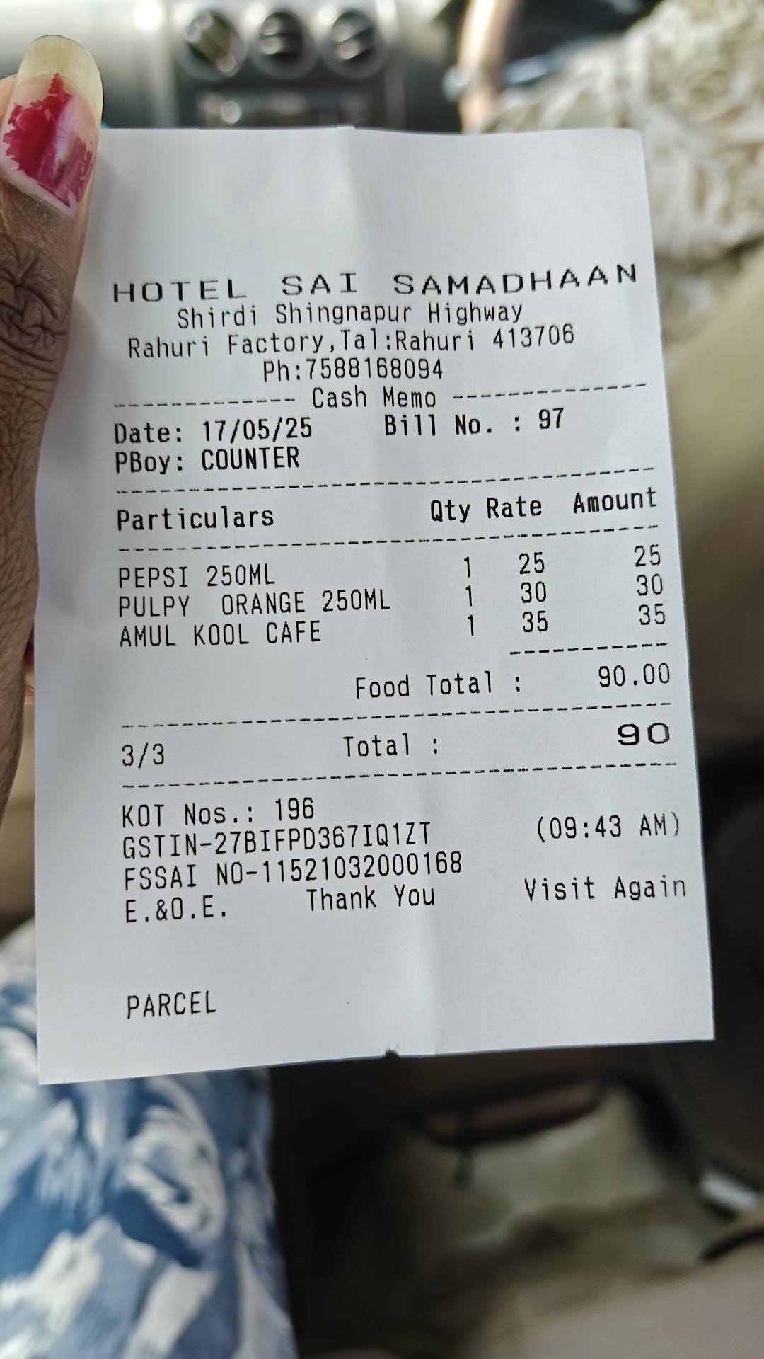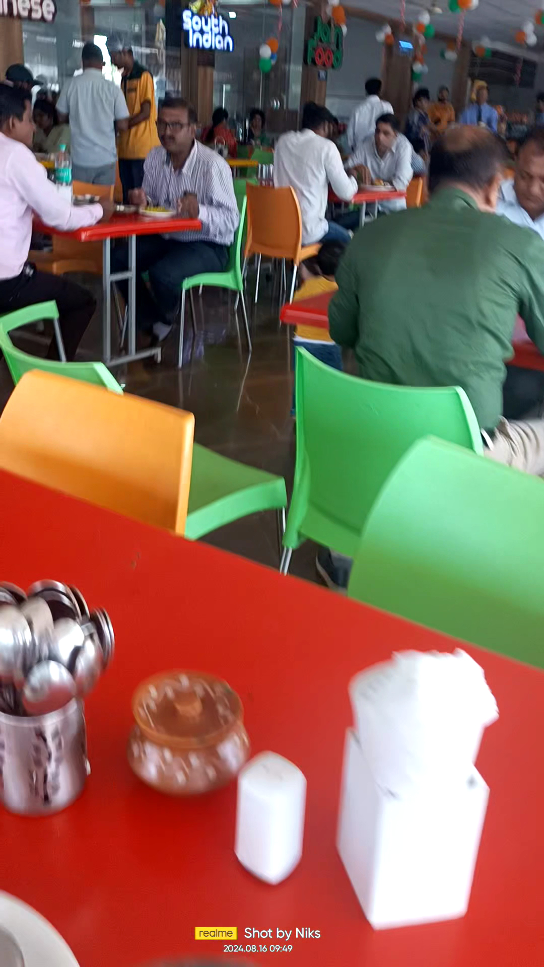 Located on the way to Shani Mandir from Shirdi, the restaurant can have 75-100 people on sitting basis. Quick service as the order goes from tab to kitchen. We have tried south indian, which is fresh and reasonable prices. The taste was good. They have variety of chutneys, masalas(dal masala, podi masala) etc that was spicy and tasty. Tea was on sweeter side despite telling for half sugar. Ample parking space is there and a dedicated guard for parking help. Payment can be done by cash, card or upi. Independence day theme was well decorated and aura was same. Washrooms are there. Handwash and drinking water are also there separately . Chinese, north indian food is also available. Prices are reasonable and service managers are available...