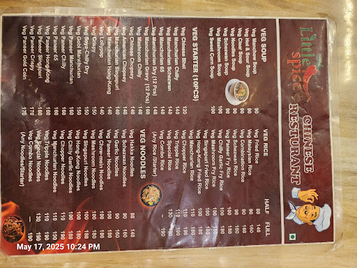 Read moreI had a wonderful experience at little spice Chinese restaurant! The food was absolutely delicious — I tried the Paneer 65, Veg Manchurian Gravy, and Veg Schezwan Fried Rice, and all the dishes were full of flavor and perfectly cooked. The spices were just right and the portions were generous.