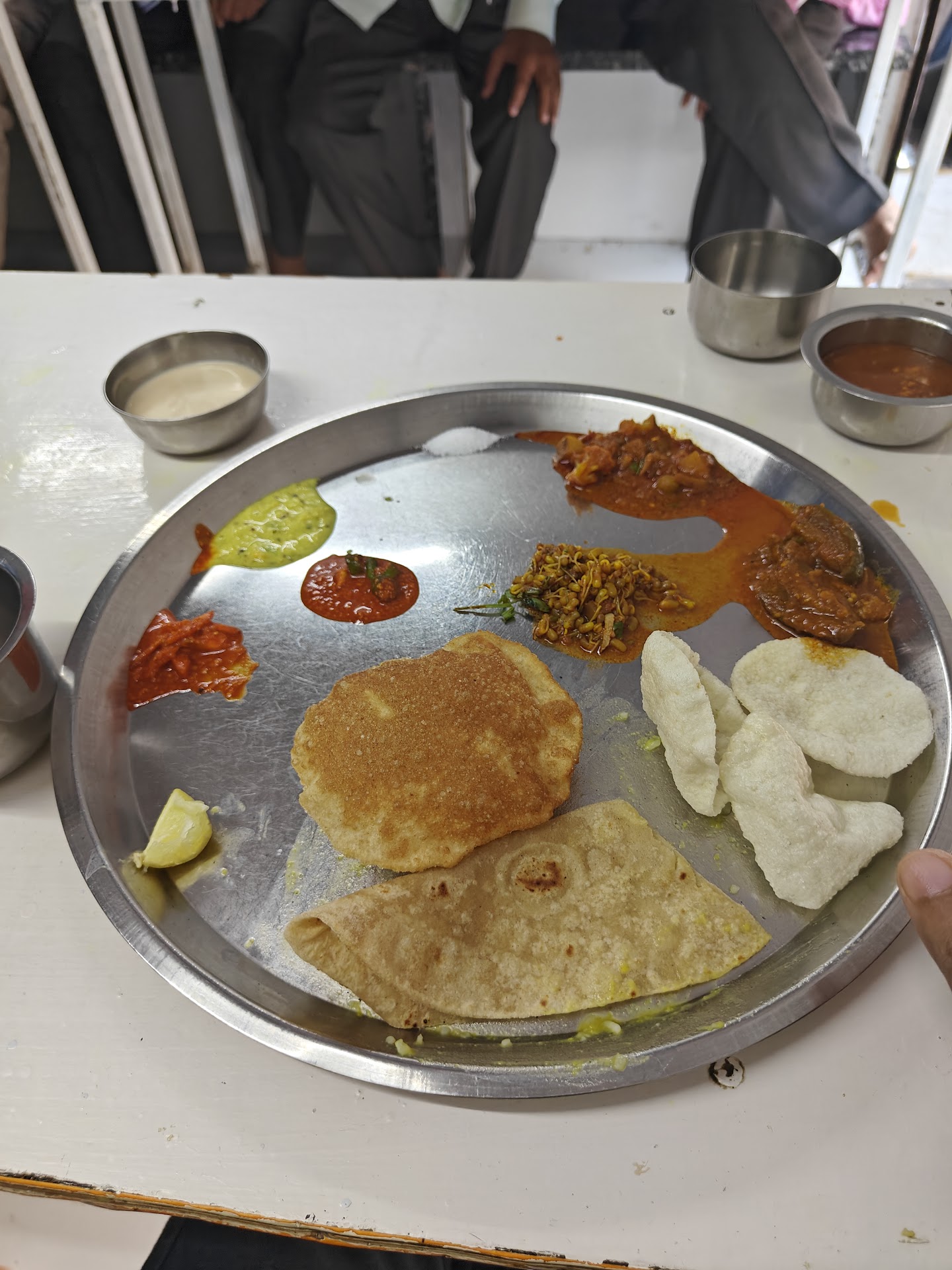 What can I tell about this place to people or visitors? First thing I would tell is, this is not a restaurant or a hotel. This is a Bhojanalay (भोजनालय) and that too a strict, typical and authentic Brahman Bhojanalay. The daily menu of the thali is fixed. The food here served is made in pure maharashtrian Brahman style and even served in the same fashion. Generally devotees either go to the prasadalay in Temple premises or they come here for clean and satvik (सात्विक) meals. Second thing is there are many same named Bhojanalays in same neighbouring vicinity. So choose Sachin Soman bhojanalay.