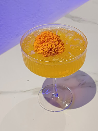 I wanted to try out the Genda phool cocktail to check out what all the fuss was about. It was definitely pretty looking, but not as great. The cinnamon smoked sour my friend ordered was better. It is a whiskey based drink while Genda phool had a gin base.