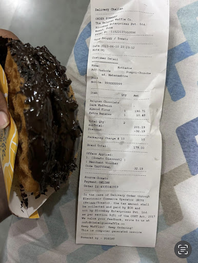 Upto this it is okay, quality stuff may be on little costly side. But they charge extra Rs. 30 for packaging. What material they use for packaging... Papaer sheet for waffle with chocolate, hardly 4-5 inch paper cover Ice cream in small paper cup One paper lifafa/ carrier/ cover hardly of half of A4 size paper.