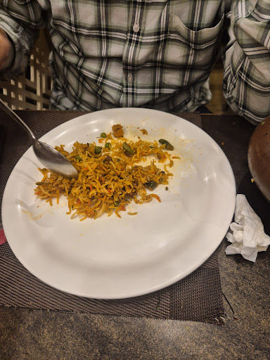 The curries, especially the Paneer Banjara, had a distinct sour, spoiled smell. The Dal Tadka was completely cold. The roti and naan were cold and rubbery. The so-called "Dum Matka Biryani" was an absolute fraud. It tasted like cold, standard vegetable biryani from a bulk buffet that had been haphazardly scooped into a matka for presentation.