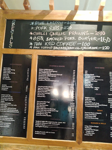 Went there on recommendation during a visit to Ukhrul earlier this week. Entrance is unassuming but once inside, the decor is chill & relaxed. Comfortable seating was greatly appreciated by my parents especially my father, who uses a walking stick. My parents were very happy with their chowmein, chilly chicken (gravy) & momos. I ordered a BBQ smoked pork burger. The actual pork itself was excellant, however I was disappointed with the 3 potato smilies, uninspiring coleslaw in the burger, but especially with the burger bun itself; it appeared like it had been grilled on a pan with butter, so the whole bottom half was soggy, oily and basically quite mushy. I personally like to have the burger bun very slightly toasted and slightly crispy, definitely not soggy .... That's why the 4 stars instead of 5 Menu looks...