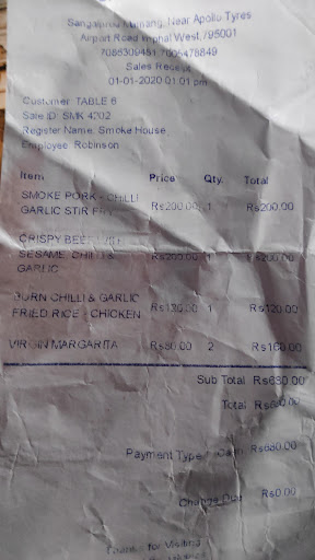 Read moreWe ordered fried rice, crispy beef and smoke chicken with chilli garlic, which the waiter wrote down. He brought out pork instead of chicken for a customer that did not eat pork. The customer service was terrible. For a mistake they made, they did not own up and put the customer first. We showed him the order he wrote down in his notepad which said chicken not pork. And yet he had the nerve to tell me "Blind da tousankhibane" without an apology. Yeah we still paid for the pork which we did not order because we did not want to cause a scene in front of their other customers. I doubt he had any knowledge of how to handle a customer. Why do you think there are hotel management classes!