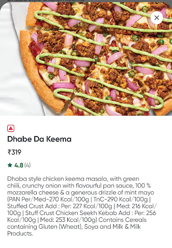 One of my worst pizza Hut experience ever. 😭I ordered a Dhabe Da Keema , Medium , with stuffed seekh kebab crust with added topping of Chicken sausage. The price of the pizza alone was Rs 753 .😢 Firstly one of the main ingredient of that pizza is the green 💚 mint sauce which I love , that's why I ordered this pizza .And due to some reason they didn't give that sauce on that pizza and they didn't bother contact me or anything and just sent the pizza without that sauce .If you don't have that sauce compensate me with another topping or something but no .Rest the pizza is just okay , toppings could be more in quantity .I generally like Dominos far more than Pizza Hut but here Swiggy don't provide dominos so I had no other choice . This type of unprofessional behaviour from such renowned brands are unacceptable and unexpected. I am truly disappointed and my day and money is ruined. I complained to Swiggy but they won't care and give some silly useless coupon. So I would suggest never order from this outlet again and save your money for better food . Edit: You can see they asked me to mail them , I did and they didn't even care to reply. Swiggy also denied any compensation or anything. So I'd say better avoid this...