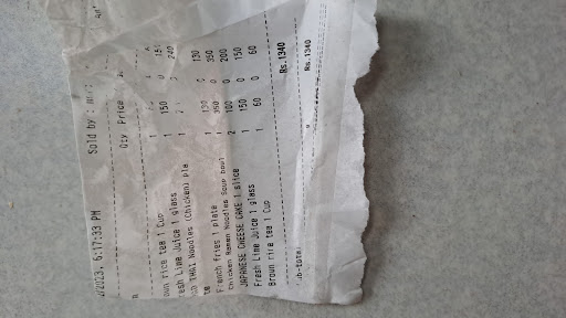 Ā Ā Ā Read moreYesterday I went their along wid my friend so I ordered 1 Brown rice tea(60),1freshlime juice(150),1thai pad noodles(240),1French fries(130),2japanese cheese cakes(200), 1 chicken ramen (350)which should be costed around 1130 but they add another round of brown rice tea which was only a common tea bag, lime juice making it 1340 ....I Don't know why they did it.. maybe they thought just bcoz we are not from here we won't understand. Lol! And just some kid who won't check the bills. Anyway I Don't want to stretch this further but we careful , whoever see my reviews Don't let them fool u like us stupids. I regret to not check the bills yesterday and what more I even gave them a tip of 10 since I find everything their good especially them playing Taylor's song. However I never thought that such a place would do this to poor outside student like me. Btw their thai pad chicken noodles taste more like pork.and not to mention the brown rice tea which they served was a...