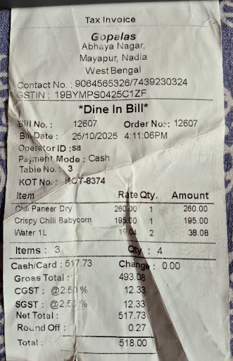 Read moreI never imagined food without onion and garlic could taste so delicious. There are plenty of dining options near ISKCON in Mayapur, and our hotel receptionist recommended this restaurant. It's located a bit off the main road, down a dimly lit alleyway, which felt a bit unsettling during the winter nights due to the lack of people around. However, we were pleasantly surprised by the experience. The ambience was warm and inviting, and the food was exceptional. I highly recommend trying their vegetarian starters and kadhai paneer — both healthy and flavorful. I would definitely visit again, though the service could use some...