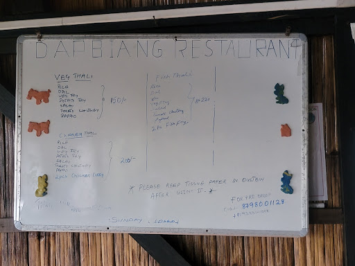 Price : reasonable, considering the location. Do keep in mind, we are having food in a north east village which is bestowed as the cleanest village of Asia. Veg thali Rs 160 Egg thali Rs 190 Fish thali Rs 250 Chicken thali Rs 260