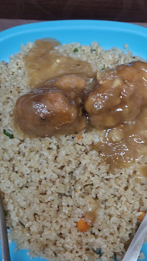 The food seems to have already been prepared & was just heated up in the microwave so it didn't take time for it to reach our table. The fried rice was prepared using the typical small grained rice fried with carrots & beans & came with 2 pcs of chicken. The quantity of rice was generous. It was good. The Chilli Chicken was also ok but didn't pack any heat. For 100 bucks it was decent. Meva however could not complete her pork chow as she didn't like the smell of the meat. Anyway I can't give my review of it since I didn't try it.