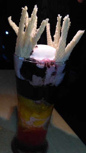 Swiss Peak Tall Sundae - Nice layers of chocolate, vanilla and strawberry ice cream topped with chocolate sauce, waffles and dry fruits. Sizzling Brownie with Ice Cream - Delectable sizzling Brownie as it should be. Paan - Happy Ending with paan with stuffings of coconut.