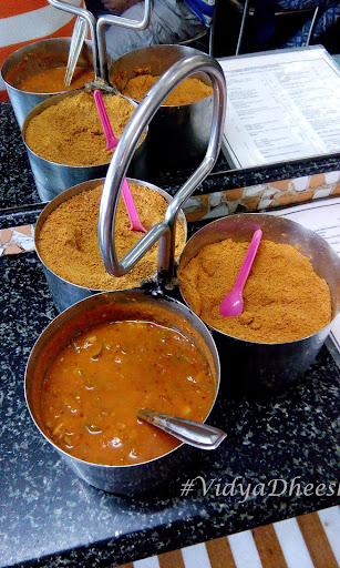 I personally didn't like the Sambar they serve its a bit sweet and less spicy for my palate. But what I love all types of chutneys that they serve; white, green, red and also the dry powder chutney. A hard-core Southie will mix the dry chutney with oil, either coconut or til and have the Idli with it.