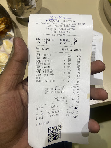 The highlight of our meal was the mutton – tender, flavorful, and perfectly spiced. You could tell the recipe was crafted with care and a deep understanding of traditional Malvani cooking. We were really looking forward to trying their famous wade, but sadly, they had run out by the time we got there. It was a bit disappointing, but it’s also a testament to how popular they are.
