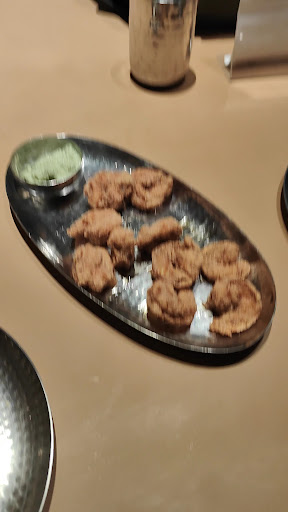 I did not enjoy the food I'll say, the first reason will be when I ordered Tawa fried Prawns 🍤 it was not crunchy at all and there was no taste, it was blant, not spicy, not tangy, nothing. It was served along with Coconut 🥥 chatni. Further, we ordered Bharwa (Filled) Pomfret 🐠 it was also very blant (same coconut chatni was filled inside which was served with prawns, it was properly cooked, properly covered with rawa and masala but could not taste the malwan spice in it. Further, we tried Tisriya (shells 🐚) we found a lot of it empty and we specifically asked the staff 🧑💼 to make it spicy 🔥 so he said not possible with Gravy we can make the dry one spicy 🥵 (I did not understand why gravy cannot be made spicy) but we agreed for dry one, now in this we literally felt that a red chilli powder 🌶️ was added from top and mixed before serving we could not enjoy it at all. We also ordered Bombil Thali (the quantity was really good for Bombil) but no spicy 🔥 here as well.