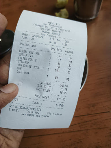 Best parth of Aditi restaurant is it's fast and friendly service.!! Cleanliness of restaurant is second best part.! Quality and quantity both good. Pocket friendly and worth for the money.! Overall good and packet friendly veg restaurant. Here u will get tasty food. Hotel is neat and clean but crowded most of the time maybe just because of its location. It's exactly located opposite to KEM HOSPITAL. Recommended if you are looking for a Pure Veg restaurant near by Kem Hospital.