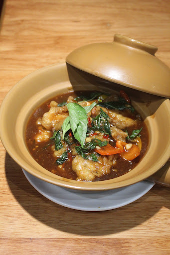 Asian pickled pepper chicken - pepper chicken with a great asian sauce . It was very beautifully combined and the sauce was really full of flavour . The chicken was quite succulent and a great taste of sauce till the last bite .