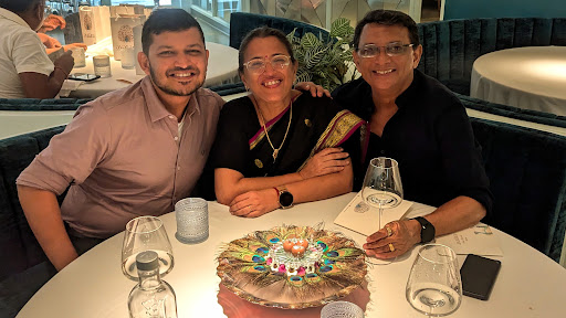 As a kind gesture for our anniversary, the servers, Viraj and Ruksar, surprised us with a complimentary, delicious cake. Avatara embraces a spirit of generosity, offering guests a takeaway sweet or savory treat at the end of their meal—we received a mango-coconut Ghewar.