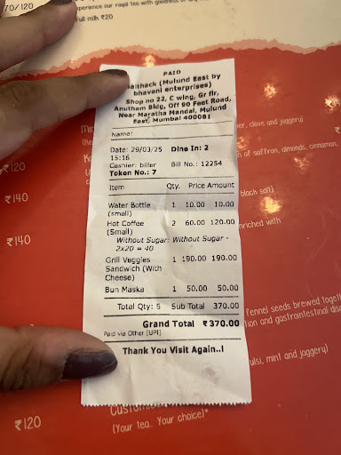 I visited Baithack in Mulund East a while ago and had a rather disappointing experience. I ordered an elaichi chai, which turned out to be a below-average machine pre-mix that tasted like something you'd find in a corporate vending machine.