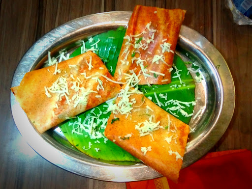 Rajani dosa - Delicious dosa, tasty potato filling with cheese, served with sambhar, coconut chutney and ginger chutney... Recommended...