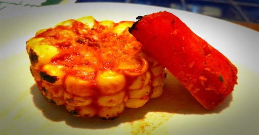 Sweet Corn marinated with spices was tasty, spicy and sweet...