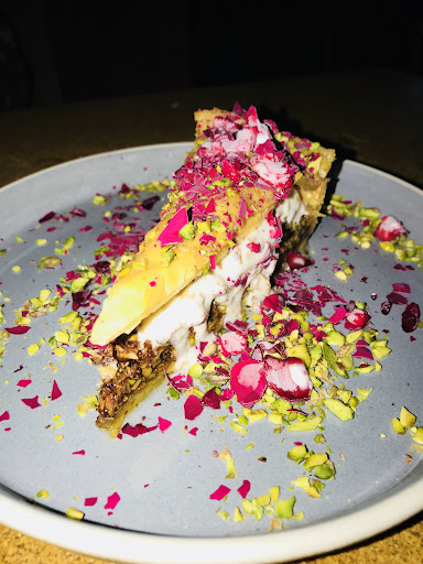 Baklava: I was very excited for this one, I was in two minds with Baklava or the Lotus Drama which was the cheesecake. Me being a huge fan of the cheesecakes I don’t miss it anywhere. But this was different. It was Baklava, Baklava is a rich, sweet dessert pastry made of layers of filo filled with chopped nuts and sweetened and held together with syrup or honey. It is characteristic of the cuisines of the Levant, the Caucasus, Balkans, Maghreb, and of Central and West Asia and I wouldn’t have missed it for the world. With the help of my dear friends at Bayroute on their suggestion we went for Baklava and I was so much impressed with the presentation with the rose petals and the way it looked like was a real deal. It was not only presented well but it tastes so rich and heavenly. I’m definitely recommending this to everyone reading this out here. Go for it guys without a second thought! Impressed!