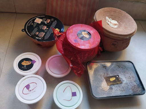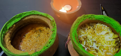 I ordered- 🍽 1/2 kg chicken biryani - Served in a mutka with dum. Royal in taste and perfect cooked. In case you want to heat it up for later consumption, the biryani mutka is served with a extra pot with candles in it. This is a crazy idea.