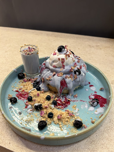 The Dubai Bling Boba is another fantastic option, with its rose flavor and topping of dried rose petals, creating a pretty lavender color. Lastly, the Taro Hot Cake is an absolute treat, with its unique type of pancake topped with a lavender-colored dressing and vanilla ice cream.