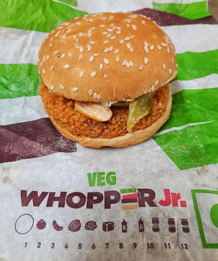 Read more*Delivery experience - Ordered veg crispy and whopper Jr. The veg crispy was a bit dry, had a little tangy taste in mayo, not so crispy the taste was a bit similar to Mc aloo tikki. The veg whopper Jr. Was better in taste, it had mixed vegetable patty, lettuce, onion, tomatoes, pickled cucumber the sauce was mild it had a little chessey flavour. The also offer double patty options. Ideal for kids and quite filling. Both the burgers were packed properly and sealed. The delivery was done very within 20mins.