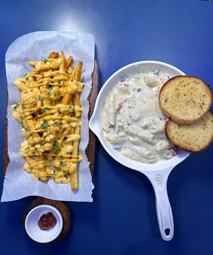 Pasta- Nice hot and creamy with perfect quantity of veggies comes with garlic bread sticks