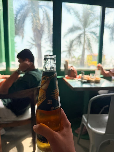 The ambiance is relaxed yet lively, with an industrial-chic decor, quirky elements, and comfortable seating. The outdoor area is perfect for enjoying the sea breeze while sipping on a refreshing drink. It’s ideal for a laid-back evening with friends or a more lively gathering, especially on weekends when the place tends to get busier.