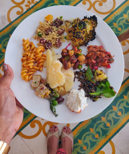 Starting with the Sunday brunch that I was most excited about had a wide variety of options and so many stations and counters be it for vegetarian or non-vegetarians. There were two separate counters for salad, one being a vegan counter. I tried the potato salad and the pasta salad amongst the non vegan and they were delicious. But the vegan salads were even better. I totally loved the cous cous, pumpkin, beans and chickpeas, wild black rice and the roasted cauliflower salad. I probably filled my self with these amazing salads.