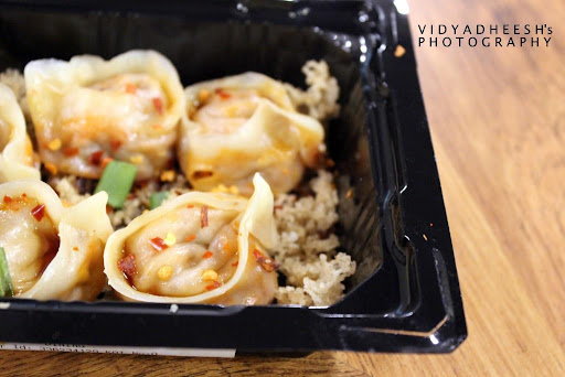 Assorted vegetable dumplings: This one with was schezwan sauce. Better than the previous dumpling choice.