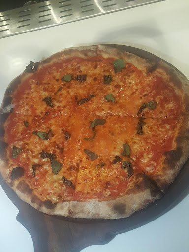 Napoli pizza (margarita version)-A woodfire speciality pizza.made with tomatoes and mozarella cheese, confit tomatoes .Base is hand tossed and solely made in wood oven Fresh basil,salt,virgin olive oil also used in its preparation.Authentic.