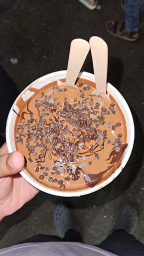 The vibes at Ghatkopar Khau Galli in the evening are electric — the place is buzzing, people queuing up, phones out, reels rolling... it’s a legit viral dessert hotspot.