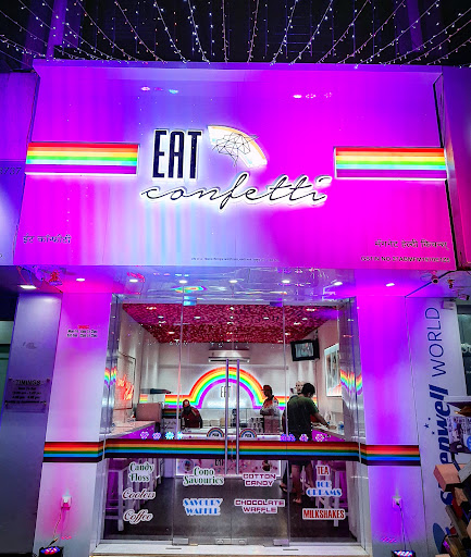 One of the most magical place is out in Mumbai, and im absolutely happy that it has started its first outlet in Mumbai from Mulund. Just below Vikas Paradise, people who are new to this place area amd want to visit here the best land mark for those people is Rmall. Now talking about Eat confetti, i would say it has been a love for me at the first sight. I just could see some amazing Rainbow theme all around and it looked way better than i thought. So basically, Eat Confetti is a place where they serve candy floss icecreams and lots more. But, Mostly related to the floss which we used to have it in the childhood days and believe me i just remembered by childhood days while having these candy floss i've had it after such a long time. Ive ordered for some of the most signature stuffs here
