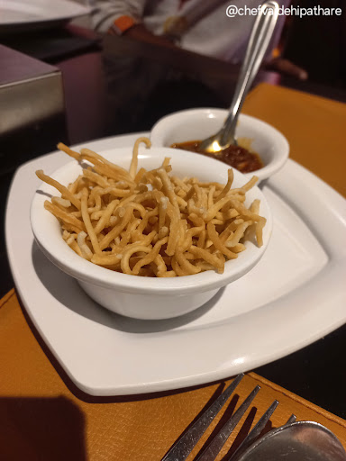 We started with Veg Dumplings, which were decent. The outer layer could have been softer, but the filling was good, and the accompanying sauce complemented them well. They also serve fried noodles with Schezwan chutney, similar to what you find at street food stalls, and it was a good way to get started with the meal.