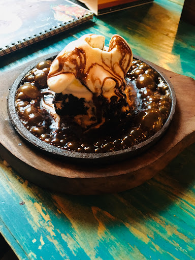 Chocolate Brownie ( 4 /5 ) Chocolate brownie topped with some vanilla ice cream & further garnished with Hot...