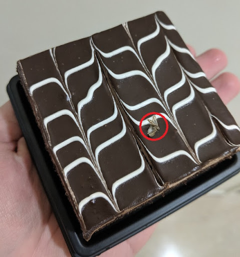 BELGIAN DARK CHOCOLATE PASTRY had an eloquent paragraph long (I kid you not) description on the menu. But nowhere does it mention their most exotic ingredient – A dead moth sticking on the pastry. Is this some new fad straight out of masterchef? It was apparently packed with the thing. See my picture. An automated or a copy pasted answer will not justify this. This was a very serious mistake and a potential health hazard. I guess I was fortunate the moth was visible on the top. Think of the food where the insect got included inside your wrap or beneath the cheese on your pizza. Yuck.