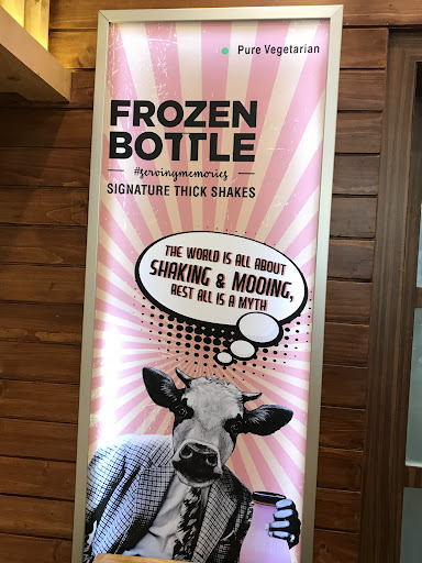 Frozen Bottle is known for tastiest milkshakes and huge quantities of ice creams. The name āFrozen Bottleā comes from the innovation of freezing the bottles and then adding Milkshake to it. This allows them to design the Milkshake Bottle from inside with various toppings which otherwise would not be possible.