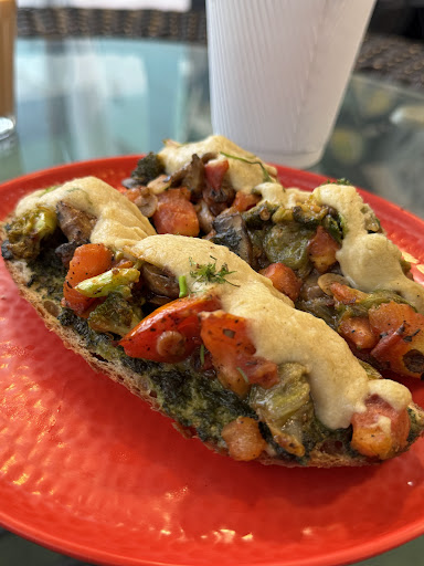 The chai was just what I needed in that moment – warm, comforting, hit the spot. But what totally surprised me was the crostini. Didn’t expect it to be that good. Light, refreshing, and honestly just felt like a nice little treat.