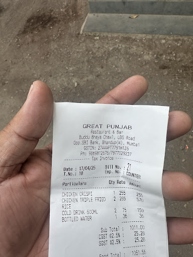 Read moreGreat Punjab... famously known as GP....the name itself says GREAT.....Great Food ..u name it from the menu and they deliver it as described...be it Mutton Biryani chicken biryani bheja fry roti Butter chicken chicken mutton handi mutton seekh keema roti......and the best Afghan Tandoori......etc I can go on and on ... people have a misconception about this place since it's a Bar...but believe me it's a Gem. Whenever we sit for dinner we end up having a long conversation with the owner Rajesh and the manager Kailash.Everything we’ve tried here has been amazing fresh and delicious.The service is good, prices are reasonable..... whoever read this I am really not exaggerating. Order once and you will surely have a "GREAT" Punjab...