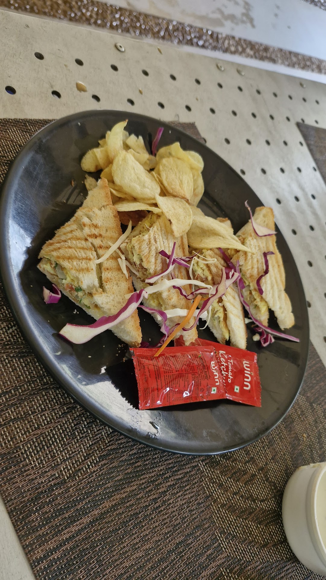 The garden café adjoining the building that houses the restaurant is quite nice.. with tents and awnings, benches and suchlike as pictures posted by others will show. The service is quite prompt with liveried bearers taking food to tables and the food itself is okay.. I had a chicken grilled sandwich which was rather a bit sour (now when I think of it).. the that gets to me is that, here too the place reeks of the old government 'daftar / canteen' feel. This isn't exactly a bad thing perhaps for I did grow up in some PSU townships in the 80s and it does in a way lead to some reminiscences.. however it is at antipodes to the modernity all around.. even within the structure.