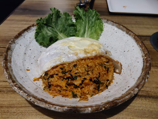 We were really full by the time we finished with our delicious Barbeque and Appetizers. Hence, we just ordered for some Kimchi Fried Rice, itâs called Veg Kimchi Bokkeumbap. I guess, this rice is cooked in Fish Oil and I liked the preparation, itâs topped with Egg Fry, that was yummy.